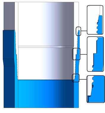 TP-ISF是我公司設(shè)計(jì)的整體半直連型特殊扣產(chǎn)品,其雙密封面設(shè)計(jì),能保證接頭在內(nèi)壓和外壓載荷下優(yōu)異的氣密封能力, 中部扭矩臺(tái)肩對(duì)頂,可以控制擰接定位,方便油田現(xiàn)場(chǎng)的使用;雙極勾型螺紋連接,能保證接頭連接效率達(dá)到管體屈服強(qiáng)度的70~80%。 ![]() |